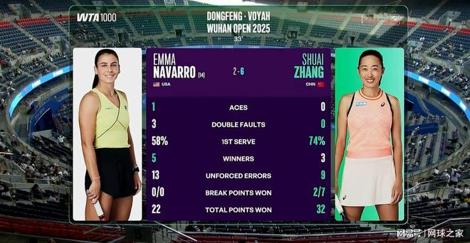 从首盘开局,中国老将就以极快的速度进入状态,迅速以6比2拿下了第一盘的胜利,彻底将纳瓦罗推向了没有退路的境地。