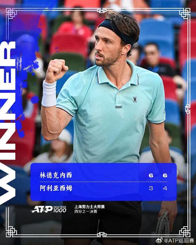 稍早结束的另外一场比赛中,世界排名第54位的林德克内希延续自己的黑马之姿,以2-0的比分战胜阿利亚西姆,晋级半决赛。