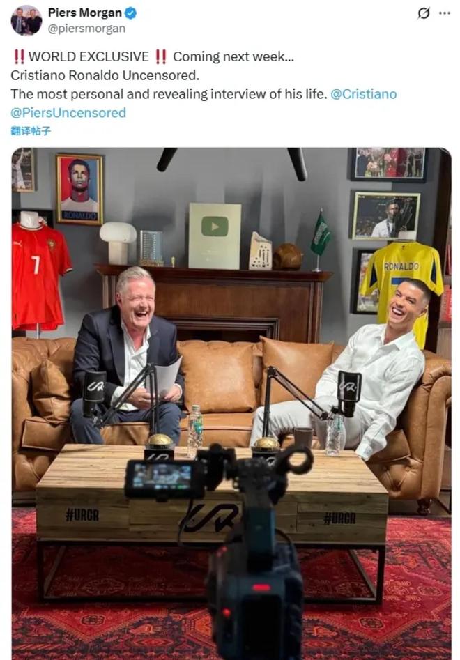 明年,也就是2026年,就是世界杯年了,美国、墨西哥和加拿大联合举办。届时,预计C罗、梅西都大概率会参加,这将是二人第六次亮相世界杯。也将创造世界足坛的传奇,因为在以前,如布冯、马特乌斯等球员只是做到了5次参赛的壮举。能够6次参赛是非常了不起的。而上一次世界杯,也就是2022年卡塔尔比赛,是首次在秋天举办的赛事。当时,C罗领衔的葡萄牙队,梅西领衔的阿根廷队都是跃跃欲试。尤其是C罗,非常渴望冲击到国家队层面的最高荣誉:大力神杯,他甚至坦言:如果能够拿到2022世界杯冠军,我会当即退役。 不过最终,阿根廷和梅西夺得冠军,葡萄牙和C罗被摩纳哥淘汰出局,留下了C罗遗憾的背影。——当时甚至还有球迷调侃:“失业”的C罗,黯然回家了。为什么说是“失业”呢?因为就在2022年11月20日,卡塔尔世界杯开始前大约10天,主持人皮尔斯·摩根就采访了C罗。其中,C罗谈到了很多话题,包括自己和梅西的对比,自己儿子夭折的伤心,对于足球比赛的理解,对于家庭的侧重。而其中,他重中之重谈及的话题,就是关于第二次加盟曼联的感受!