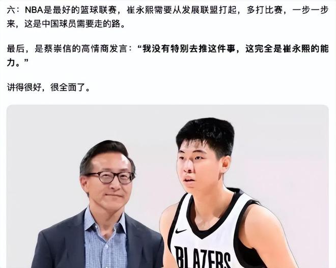 也正如姚明说的:“希望年轻球员能走出去”。小曾虽遗憾被裁但起码已经尝试走出去了,未来希望还能看到他重新站在赛场上。