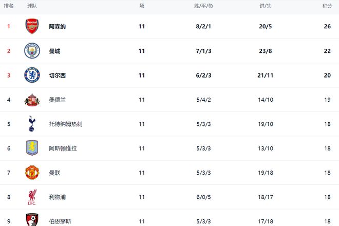 利物浦连续6场联赛输掉了5场,排名不断下滑,已经下滑到现在的第8名。英超争四格局非常混乱。热刺、阿斯顿维拉、曼联、利物浦和伯恩茅斯都是18分,排名第5到第9。这5支球队距离欧冠区只有1分的差距。第4名的是桑德兰,拿到19分。相关资讯