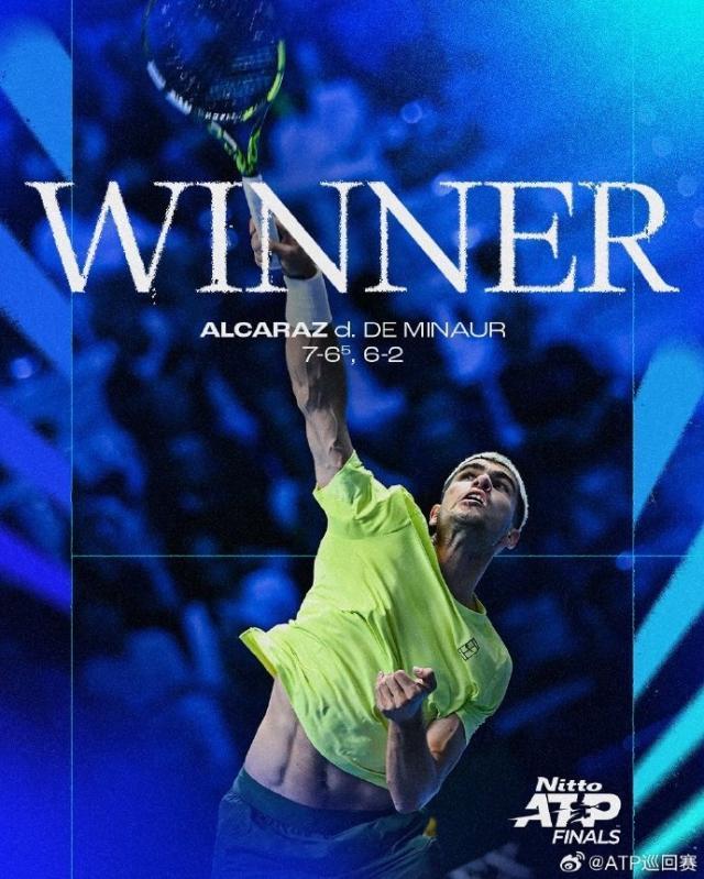 ATP总决赛吉米·康纳斯组首轮,头号种子阿尔卡拉斯7比6(5) 6比2击败7号种子德米纳尔,顺利取得小组赛开门红。阿尔卡拉斯对阵德米纳尔5战全胜,其中本赛季3战全胜。22岁吴宜泽10比6希金斯,夺斯诺克国锦赛冠军