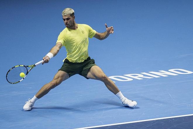阿尔卡拉斯在比赛中。ATP年终总决赛:阿尔卡拉斯迎来开门红11月9日,ATP年终总决赛吉米·康纳斯组迎来首轮较量,头号种子阿尔卡拉斯2比0击败7号种子德米纳尔,迎来开门红。此前双方有过4次交锋,阿尔卡拉斯保持全胜。此役首盘双方打得异常激烈,阿尔卡拉斯在关键分的处理上占据优势,这才7比6拿下首盘;第二盘阿尔卡拉斯延续稳定的状态,反观德米纳尔似乎失去了心气,阿尔卡拉斯兵不血刃以6比2获胜,本赛季第3次击败德米纳尔。值得一提的是,第三次出战总决赛的阿尔卡拉斯还是第一次在赛事首战获胜,接下来他将迎战弗里茨赫穆塞蒂,如果能够在小组赛收获三连胜,就可以提前锁定ATP年终第一的排名。阿尔卡拉斯高歌猛进,传奇选手德约科维奇则受困于伤病,在刚刚拿下ATP雅典250赛冠军后,这位老将通过社媒宣布自己退出今年的ATP年终总决赛。“我希望以一个最好的状态去都灵参加年终总决赛,但今天在雅典的比赛后,我遗憾地宣布我将因伤退赛,对于支持我的粉丝,我感到非常抱歉,我希望所有参赛选手可以打出精彩的一站比赛,我也期待着尽快重返赛场。”