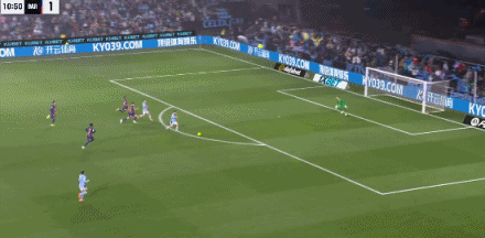 第37分钟,拉什福德妙传,莱万抢点,巴萨再次领先。